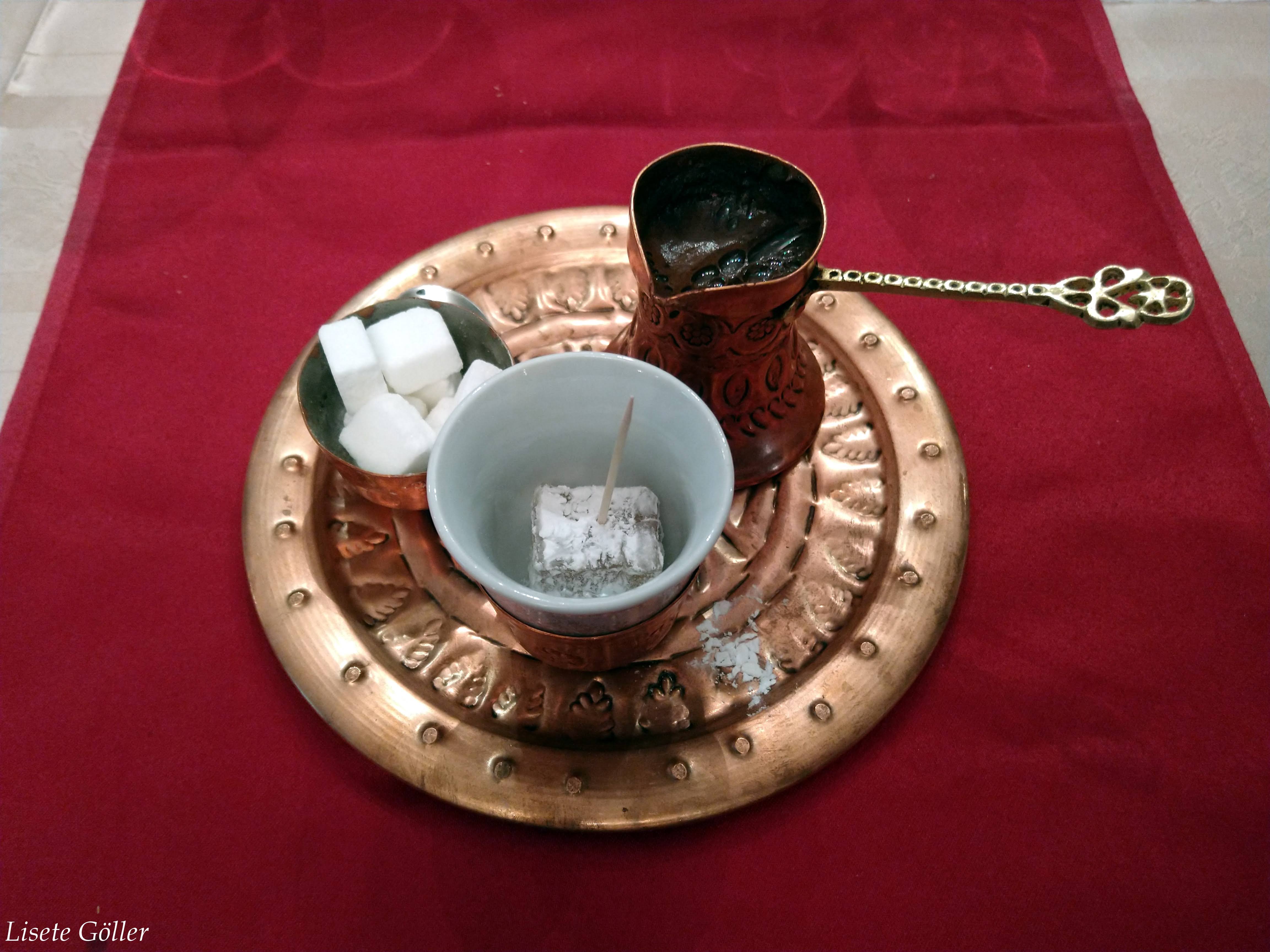 porcelana. Este foi servido com um docinho turco, o que pode dispensar o açúcar